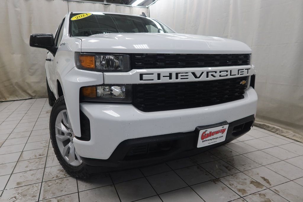 Priced below KBB Fair Purchase Price!2021 Chevrolet Silverado 1500 Custom Custom Summit White 2.7L Turbo 8-Speed Automatic 4WD8-Speed Automatic, 4WD, Black Cloth.Odometer is 56250 miles below market average!https://www.kbb.com/kbbreport/ueg82Gateway Automotive - Excellence Beyond Expectation! www.gatewayfargo.com , Excellent selection of New and Used vehicles, Financing Options, All Used Vehicles have been Fully Inspected, Detailed, and Vehicle Oil Change completed. We proudly serve Fargo, Grand Forks, Moorhead, Dilworth, Glyndon, Jamestown, Valley City, Bismarck, Wahpeton, Lisbon, Casselton, Sioux Falls, Barnesville, Rothsay, Detroit Lakes, greater Minneapolis area, North Dakota. Special offers and pricing are subject to location and dealer discretion. Available to residents of the greater Fargo, ND Moorhead, MN and Red River Valley areas.
