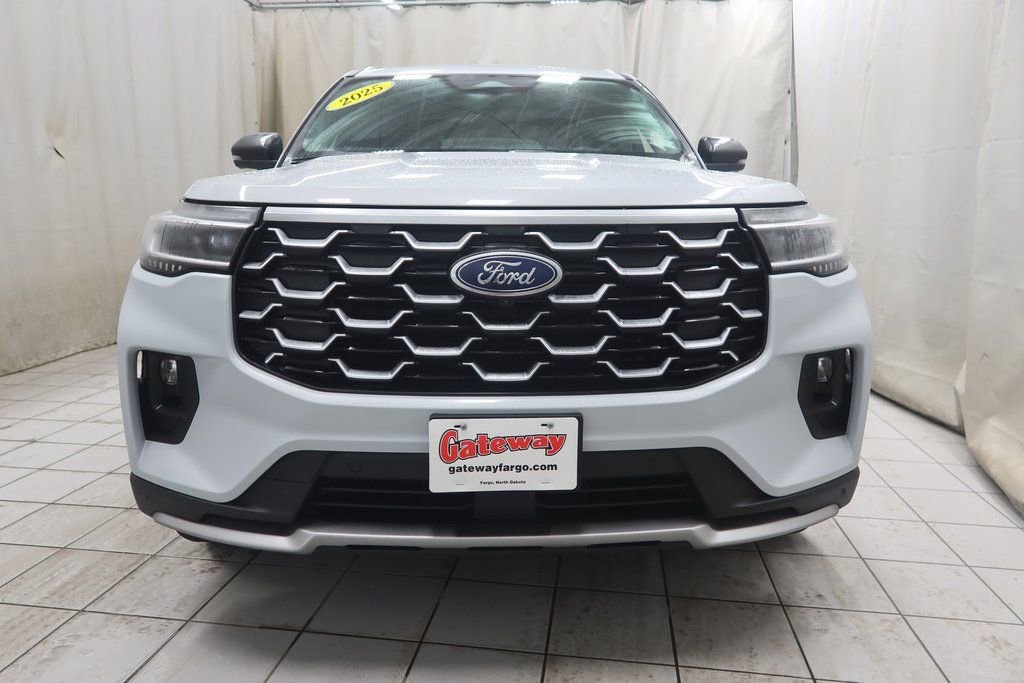 Priced below KBB Fair Purchase Price!2025 Ford Explorer Platinum Platinum Space White Metallic 2.3L EcoBoost I-4 10-Speed Automatic 4WD*Adaptive Cruise Control, Heated Seats, Navigation System, Touchscreen Controls, Backup Camera, Keyless Access with Push Button Start, Automatic Headlights, Apple CarPlay, Android Auto, Voice Recognition, Bluetooth Hands-Free, REMOTE START, Sunroof / Moonroof / Roof / Panoramic, 3rd Row Seat / Third Row / 7 Passenger, AWD / 4x4 / Four Wheel Drive, 4WD.Odometer is 817 miles below market average! 20/27 City/Highway MPGhttps://www.kbb.com/kbbreport/iob9bGateway Automotive - Excellence Beyond Expectation! www.gatewayfargo.com , Excellent selection of New and Used vehicles, Financing Options, All Used Vehicles have been Fully Inspected, Detailed, and Vehicle Oil Change completed. We proudly serve Fargo, Grand Forks, Moorhead, Dilworth, Glyndon, Jamestown, Valley City, Bismarck, Wahpeton, Lisbon, Casselton, Sioux Falls, Barnesville, Rothsay, Detroit Lakes, greater Minneapolis area, North Dakota. Special offers and pricing are subject to location and dealer discretion. Available to residents of the greater Fargo, ND Moorhead, MN and Red River Valley areas.*