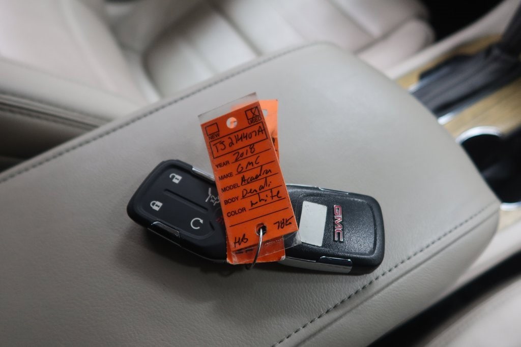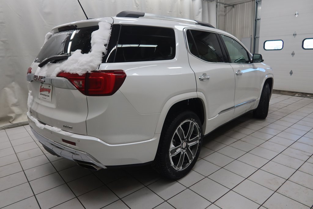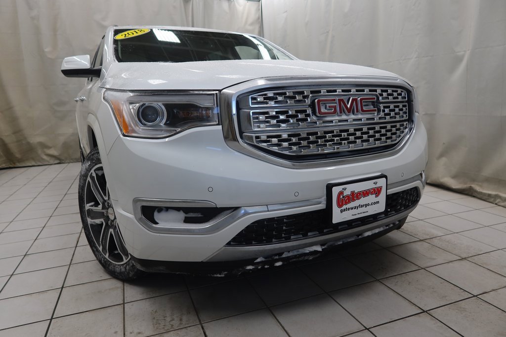 2018 GMC Acadia Denali Denali White Frost Tricoat 3.6L V6 SIDI DOHC VVT 6-Speed Automatic AWD*Adaptive Cruise Control, Heated Seats, Adaptive Headlights, Touchscreen Controls, Backup Camera, Automatic Headlights, Apple CarPlay, Android Auto, Voice Recognition, REMOTE START, AWD / 4x4 / Four Wheel Drive, AWD, Cocoa/ Shale Leather.Odometer is 9257 miles below market average!Awards:* 2018 KBB.com 10 Most Affordable 3-Row Vehicleshttps://www.kbb.com/kbbreport/ihf01Gateway Automotive - Excellence Beyond Expectation! www.gatewayfargo.com , Excellent selection of New and Used vehicles, Financing Options, All Used Vehicles have been Fully Inspected, Detailed, and Vehicle Oil Change completed. We proudly serve Fargo, Grand Forks, Moorhead, Dilworth, Glyndon, Jamestown, Valley City, Bismarck, Wahpeton, Lisbon, Casselton, Sioux Falls, Barnesville, Rothsay, Detroit Lakes, greater Minneapolis area, North Dakota. Special offers and pricing are subject to location and dealer discretion. Available to residents of the greater Fargo, ND Moorhead, MN and Red River Valley areas.*