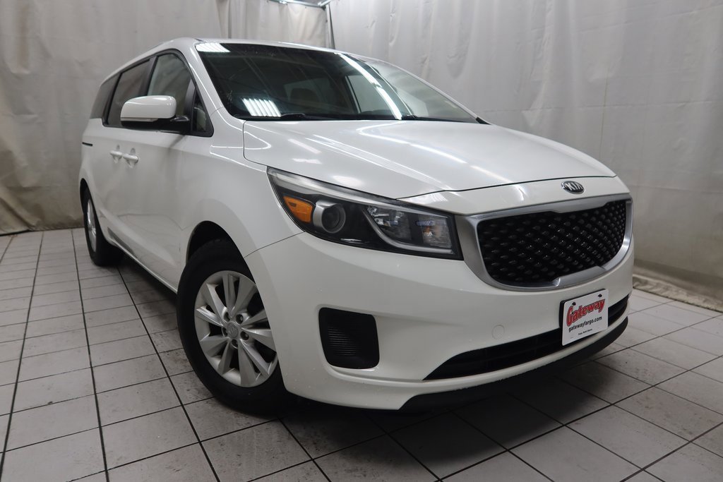 Priced below KBB Fair Purchase Price!2015 Kia Sedona LX LX Solid White 3.3L V6 DGI 6-Speed Automatic with Sportmatic FWDOdometer is 30576 miles below market average!Awards:* JD Power Automotive Performance, Execution and Layout (APEAL) Study * 2015 IIHS Top Safety Pick * 2015 KBB.com Best Buy Awards Finalist * 2015 KBB.com 10 Best Used Family Cars Under $15,000https://www.kbb.com/kbbreport/0fku1Gateway Automotive - Excellence Beyond Expectation! www.gatewayfargo.com , Excellent selection of New and Used vehicles, Financing Options, All Used Vehicles have been Fully Inspected, Detailed, and Vehicle Oil Change completed. We proudly serve Fargo, Grand Forks, Moorhead, Dilworth, Glyndon, Jamestown, Valley City, Bismarck, Wahpeton, Lisbon, Casselton, Sioux Falls, Barnesville, Rothsay, Detroit Lakes, greater Minneapolis area, North Dakota. Special offers and pricing are subject to location and dealer discretion. Available to residents of the greater Fargo, ND Moorhead, MN and Red River Valley areas.
