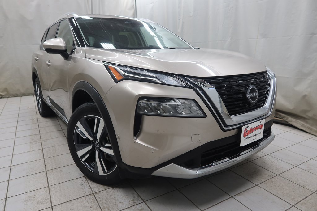 Priced below KBB Fair Purchase Price!2023 Nissan Rogue Platinum Platinum Champagne Silver Metallic 1.5L I3 Turbocharged DOHC 12V LEV3-ULEV50 201hp CVT with Xtronic AWD*Adaptive Cruise Control, Heated Seats, Navigation System, Touchscreen Controls, Backup Camera, Automatic Headlights, Voice Recognition, REMOTE START, Sunroof / Moonroof / Roof / Panoramic, AWD / 4x4 / Four Wheel Drive, AWD.Odometer is 13713 miles below market average! 28/34 City/Highway MPGhttps://www.kbb.com/kbbreport/duu2rGateway Automotive - Excellence Beyond Expectation! www.gatewayfargo.com , Excellent selection of New and Used vehicles, Financing Options, All Used Vehicles have been Fully Inspected, Detailed, and Vehicle Oil Change completed. We proudly serve Fargo, Grand Forks, Moorhead, Dilworth, Glyndon, Jamestown, Valley City, Bismarck, Wahpeton, Lisbon, Casselton, Sioux Falls, Barnesville, Rothsay, Detroit Lakes, greater Minneapolis area, North Dakota. Special offers and pricing are subject to location and dealer discretion. Available to residents of the greater Fargo, ND Moorhead, MN and Red River Valley areas.*